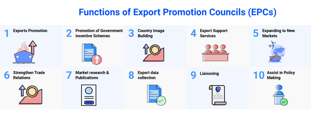 Example: A textile exporter registering with AEPC (Apparel Export Promotion Council) gets help in meeting global quality standards, labeling, and buyer compliance. Without this support, they may face rejection of shipments in the EU or US.