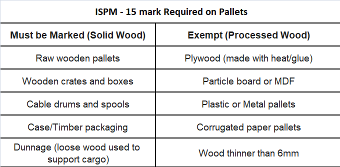 If you are exporting to a developed country using wooden pallets, they must be heat-treated and stamped with the ISPM-15 mark.