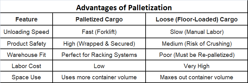 While it may seem like an extra step at the factory, developed countries (like the US, UK, Germany, and UAE) almost universally prefer—and often mandate—palletized cargo for four critical reasons: