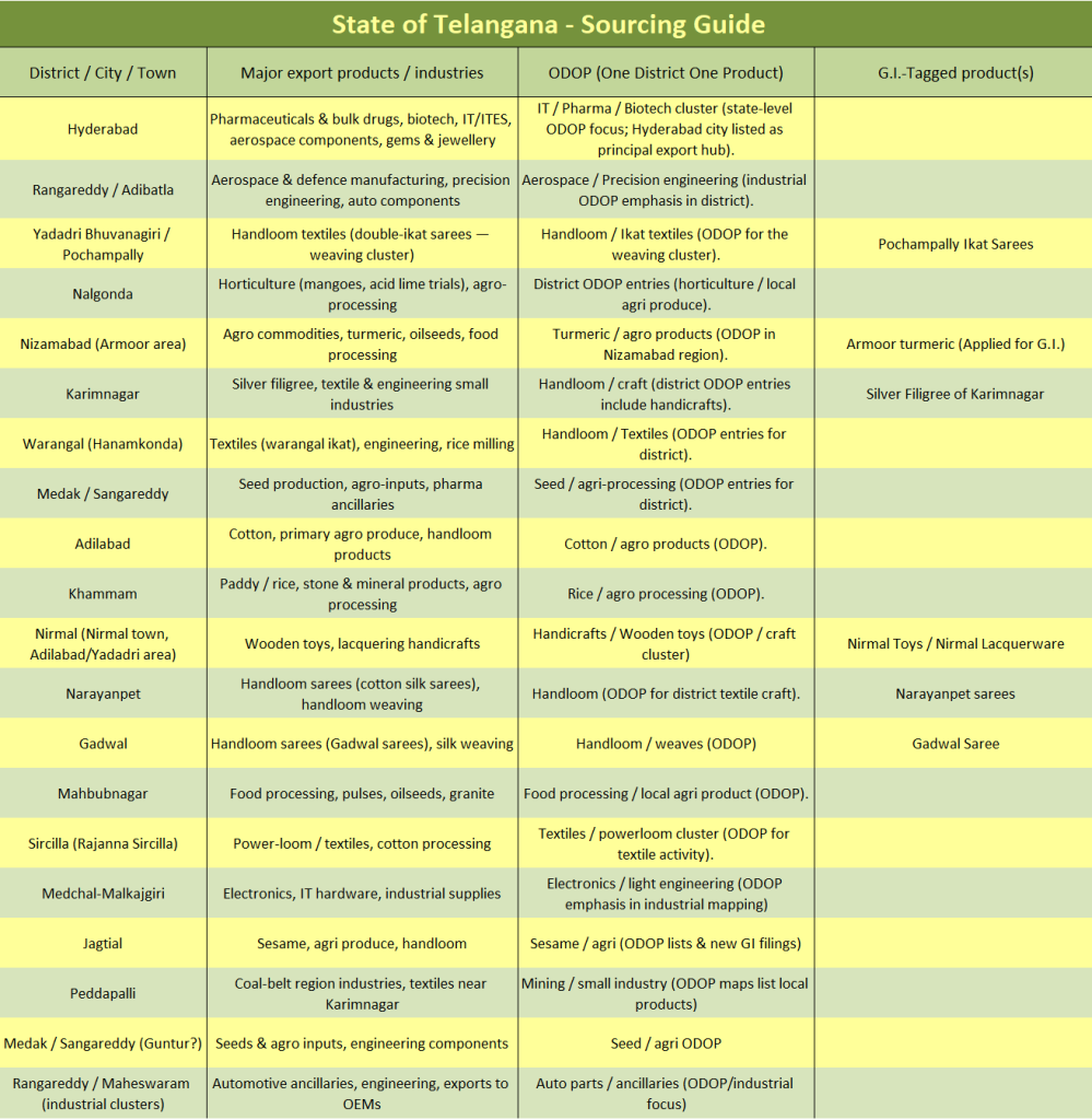 • Telangana is a landlocked state (no major seaport within the state). Therefore exports typically route via seaports in neighbouring states. Example: greenfield highway proposed linking Hyderabad to Bandar Port in Andhra Pradesh for freight connectivity.